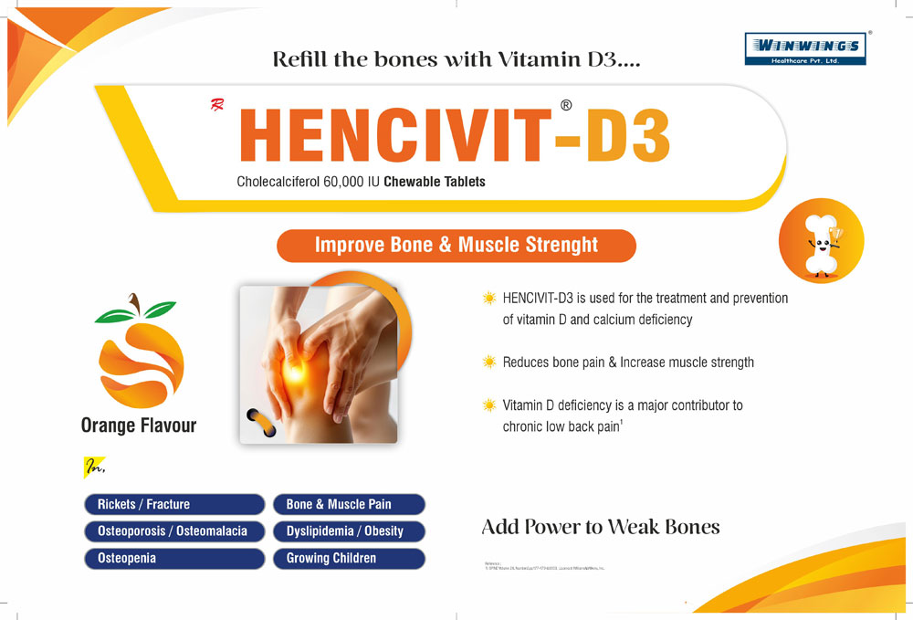 | HENCIVIT-D3 | Cholecalciferol 60,000 IU Chewable Tablets |