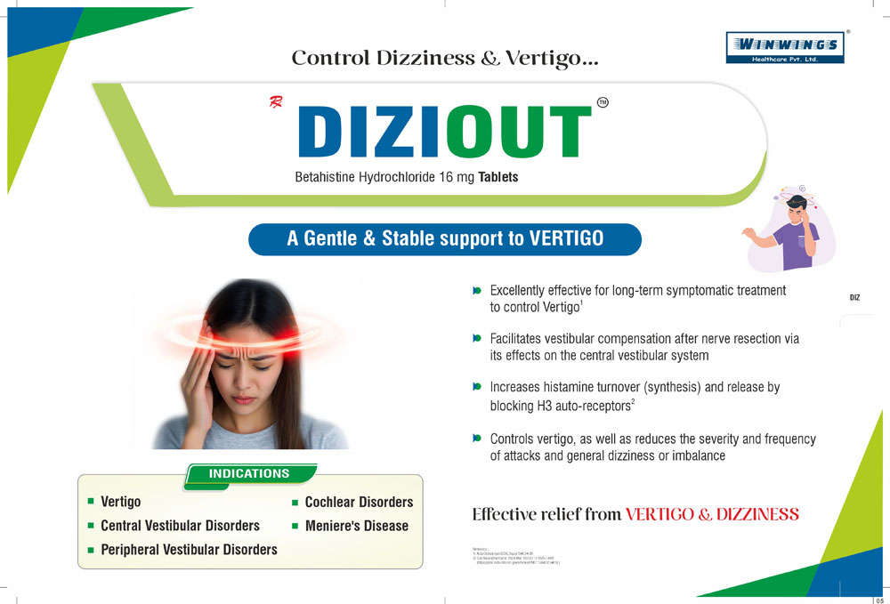 | DIZIOUT | Betahistine Hydrochloride 16 mg Tablets |