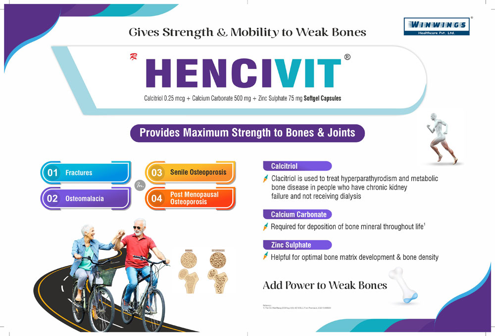 | HENCIVIT | Calcitriol 0.25 mcg + Calcium Carbonate 500 mg + Zinc Sulphate 75 mg Softgel Capsules |