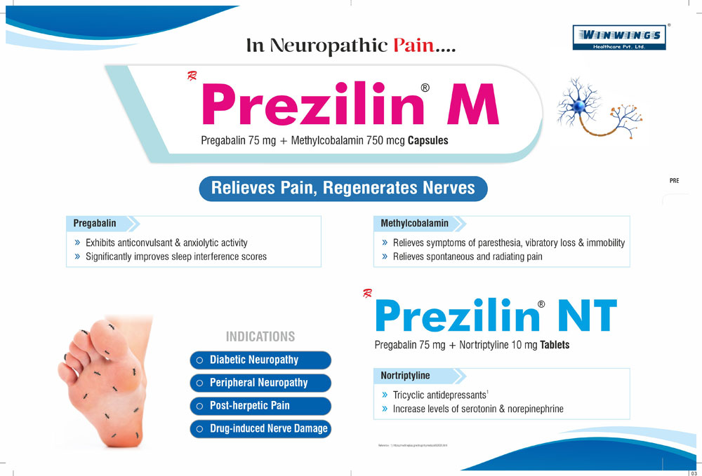 | Prezilin NT | Pregabalin 75 mg + Nortriptyline 10 mg Tablets |