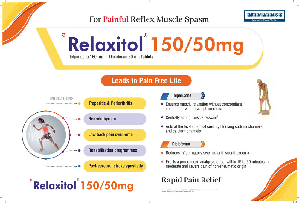 | Relaxitol | Tolperisone 150 mg + Diclofenac 50 mg Tablets |
