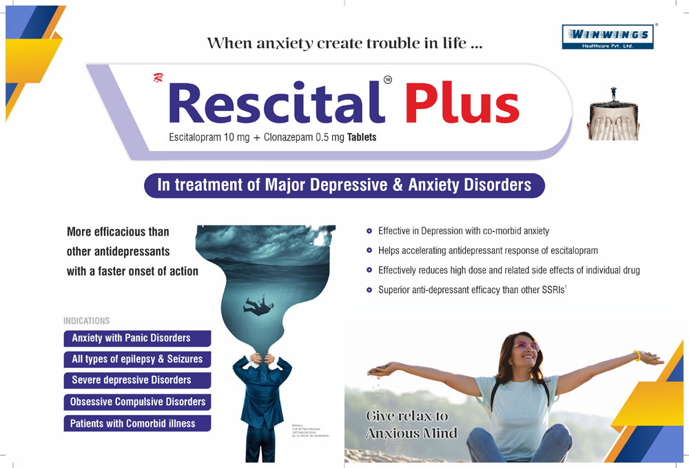| Rescital Plus | Escitalopram 10 mg + Clonazepam 0.5 mg Tablets |